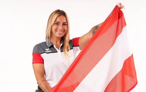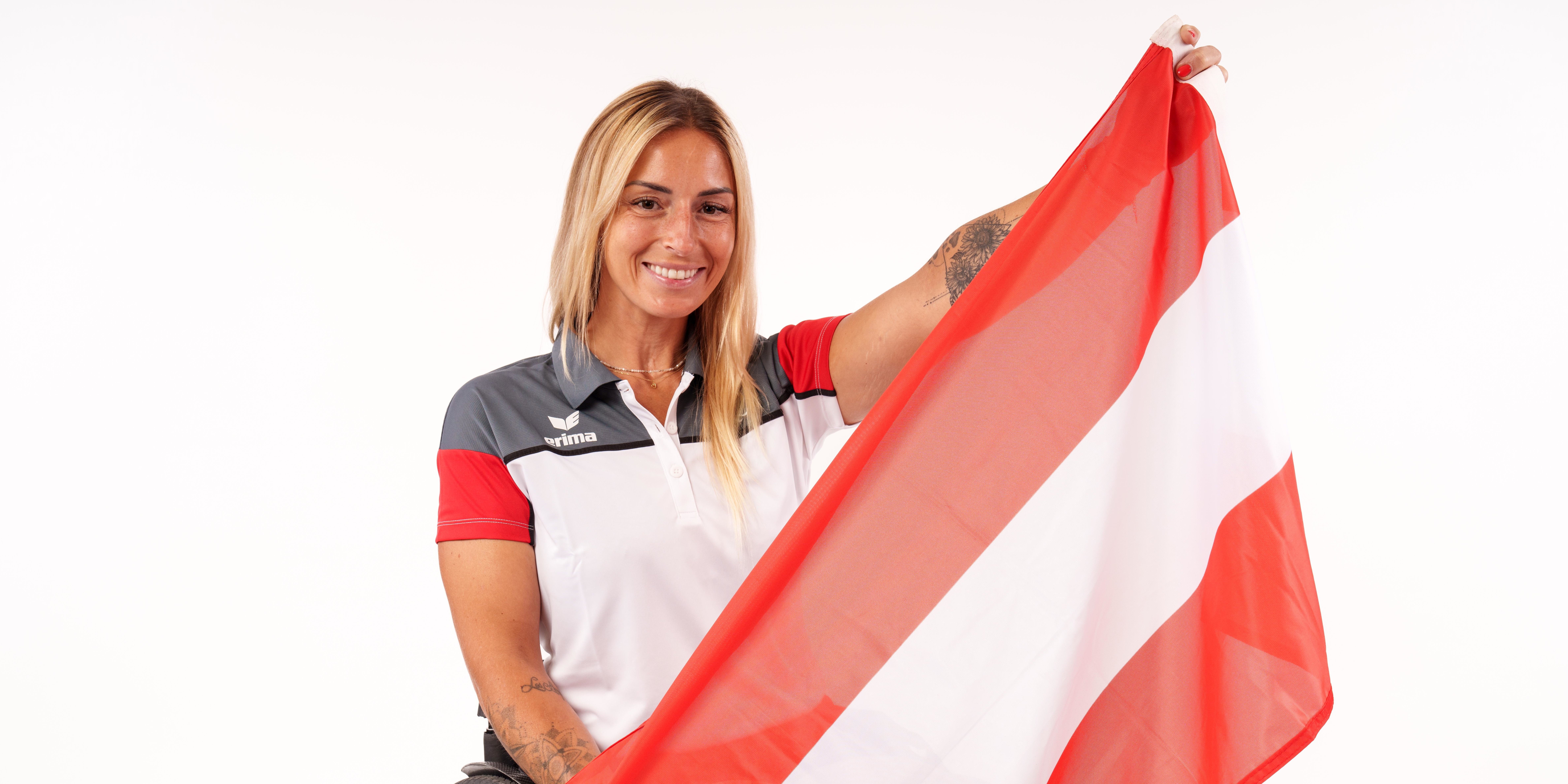 Christina Pesendorfer bei der Einkleidung zu den Paralympics 2024.