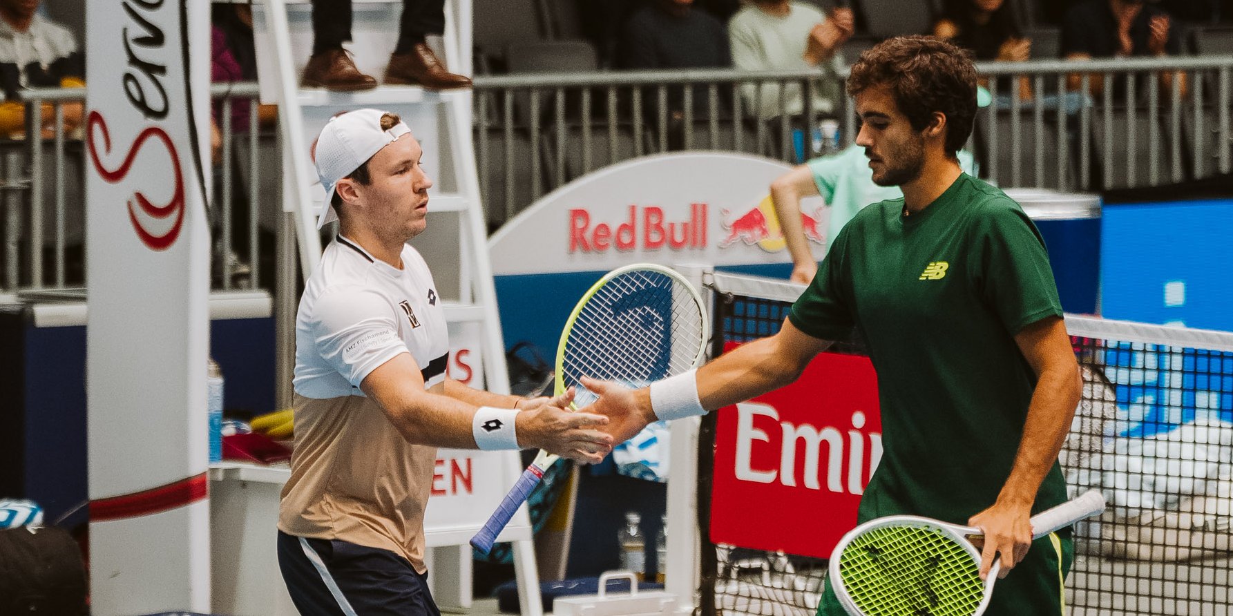 Da war es nur mehr ein Schritt, der zur Titelverteidigung noch fehlt: Lucas Miedler steht bei den Erste Bank Open in Wien, nach seinen Erfolgen mit Alexander Erler in den Jahren 2022 und 2024, sensationell zum dritten Mal im Doppelendspiel. Der Niederösterreicher (ATP-Doppel 29) und der Portugiese Francisco Cabral (ATP-Doppel 27) eliminierten in der zweiten Matchlocation in der Marx Halle am frühen Samstagnachmittag den Inder Yuki Bhambri (ATP-Doppel 21) und den Schweden André Göransson (ATP-Doppel 22) mit 6:4, 7:6 (5). Im Kampf um seinen zehnten ATP-Titelgewinn und seinen dritten beim ATP-500-Hartplatzturnier in Österreichs Bundeshauptstadt geht’s für ihn und Cabral am Sonntag um 11:30 Uhr in der Wiener Stadthalle gegen die amtierenden Wimbledon-Sieger Julian Cash (ATP-Doppel 4) und Lloyd Glasspool (ATP-Doppel 1). Die zweitpositionierten Briten setzten sich bei der zweiten Vorschlussrundenbegegnung gegen die auf drei gesetzten Australian-Open-Triumphatoren Harri Heliövaara aus Finnland (ATP-Doppel 5) und ihren Landsmann Henry Patten (ATP-Doppel 5) mit 4:6, 6:3 und 10:5 im Match Tiebreak durch.