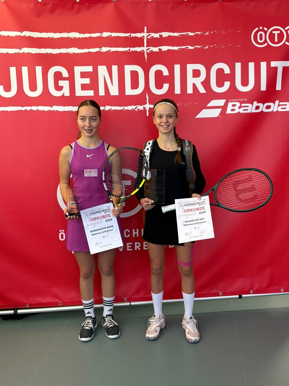 U14 in Neunkirchen: Auch im Tenniscenter Hochhauer im Süden Niederösterreichs sollte sich bei den Burschen ein Doublegewinner ins Rampenlicht spielen. Luca Sageder wurde der Favoritenrolle als jeweils Topgesetzter gerecht, schlug im rein oberösterreichischen Einzelendspiel den Älteren der Mittermayr-Brüder, den viertgereihten Jakob, mit 6:3, 6:3. Im Doppelfinale setzte sich Sageder mit Fabian Leitner (OÖTV) gegen Badis Selmi (NÖTV) und Martin Stark (VTV) mit 6:3, 6:1 durch. Im Unterschied zu Leibnitz gab es jedoch auch bei den Mädels eine doppelte Gewinnerin, und zwar Mia Neumüller. Die zweitpositionierte Niederösterreicherin zwang im Singlefinale die viertgelistete Marie Schmidhofer (OÖTV), Bezwingerin der Nummer eins Julia Ehrenberger (WTV), mit 7:6, 7:5 in die Knie. Im Doppel behielt sie mit ihrer Stammpartnerin Ehrenberger beim Endspiel der Topgesetzten gegen die zweitgeführten Filippa Gosch (VTV) und Hanna Stuhr (OÖTV) mit 7:5, 4:6 und 10:5 im Match Tiebreak die Oberhand.