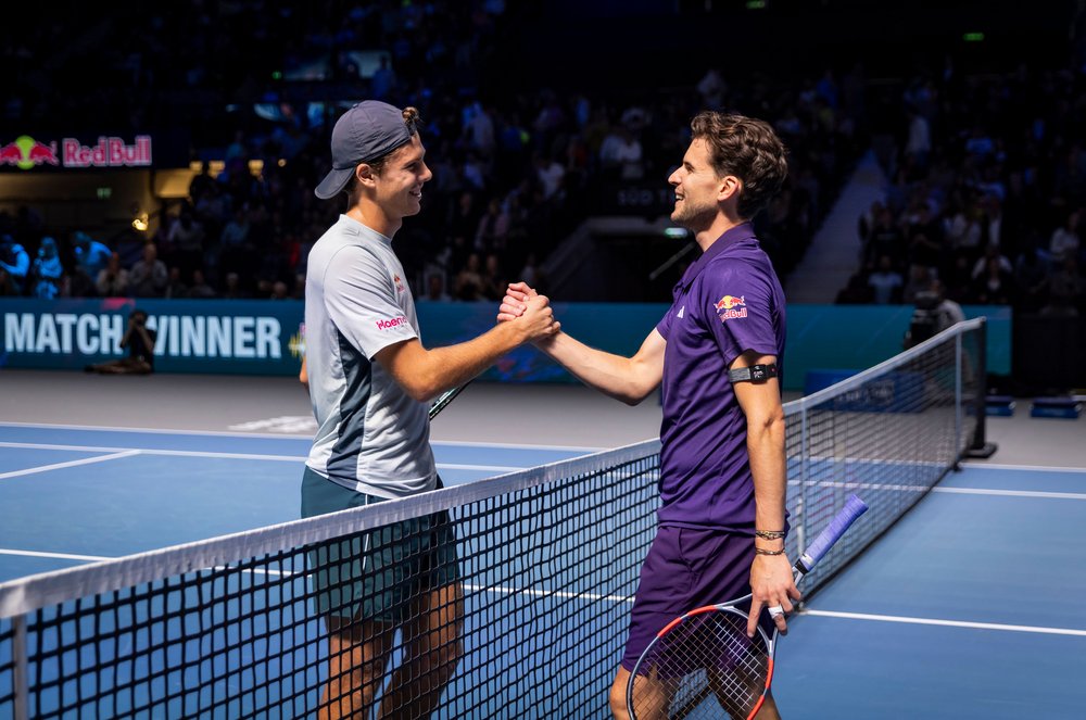 In seinem zweiten Match musste Thiem musste gegen den späteren Sieger Griekspoor, Nummer 27 der ATP-Weltrangliste, antreten. In dieser Partie war es die rot-weiß-rote Tennisikone, die sich bei 4:2 die ersten Satzbälle erarbeitete. Doch dann übernahm der Niederländer mit seinen schnellen Aufschlägen das Kommando und konnte mit einem 5:4,-5:1-Sieg den Finaleinzug fixieren, wo mit Popyrin der Sieger aus Gruppe Rot wartete.