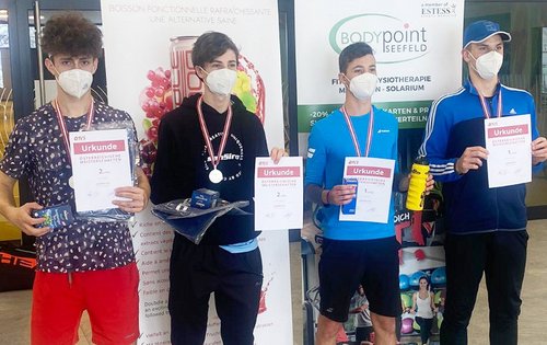 Auch im Einzelbewerb der Burschen hielt der erst 15-jährige Joel Schwärzler vom TC Hard die Vorarlberger Fahnen hoch bis ins Viertelfinale, wo er dem Niederösterreicher und späteren Turniersieger Gregor Hausberger vom TC Amstetten ordentlich Paroli bieten konnte und nach gewonnenem ersten Satz dem Niederösterreicher doch noch gratulieren musste. Die Partie endete 6:3, 4:6 und 4:6.