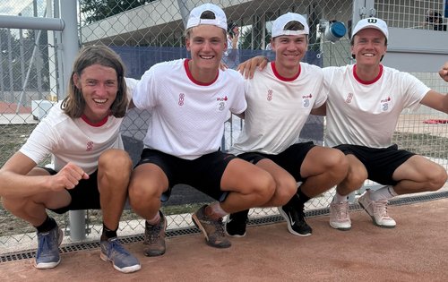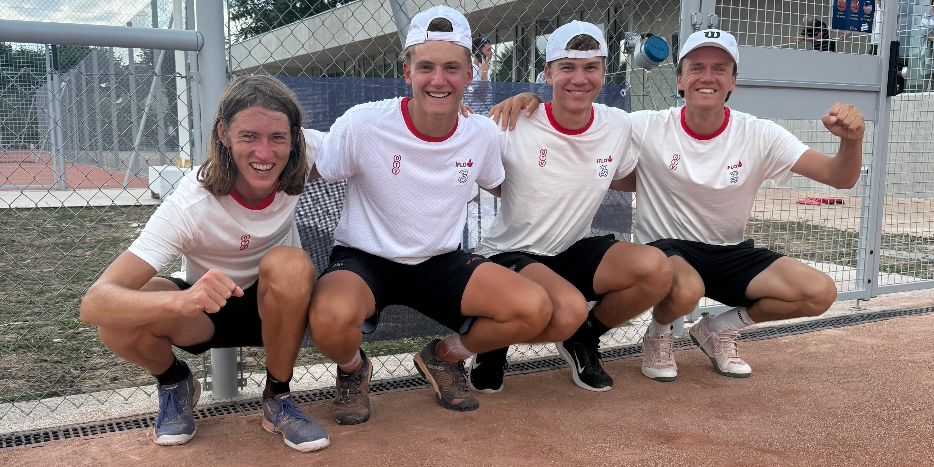Thilo Behrmann, Florian Zimmer, Alexander Gschiel und Betreuer Sebastian Beutel führen Österreichs U18-Team zum sensationellen Titel bei den Tennis Europe Summer Cups in Vichy – und lösen das Ticket fürs große Europa-Finale!