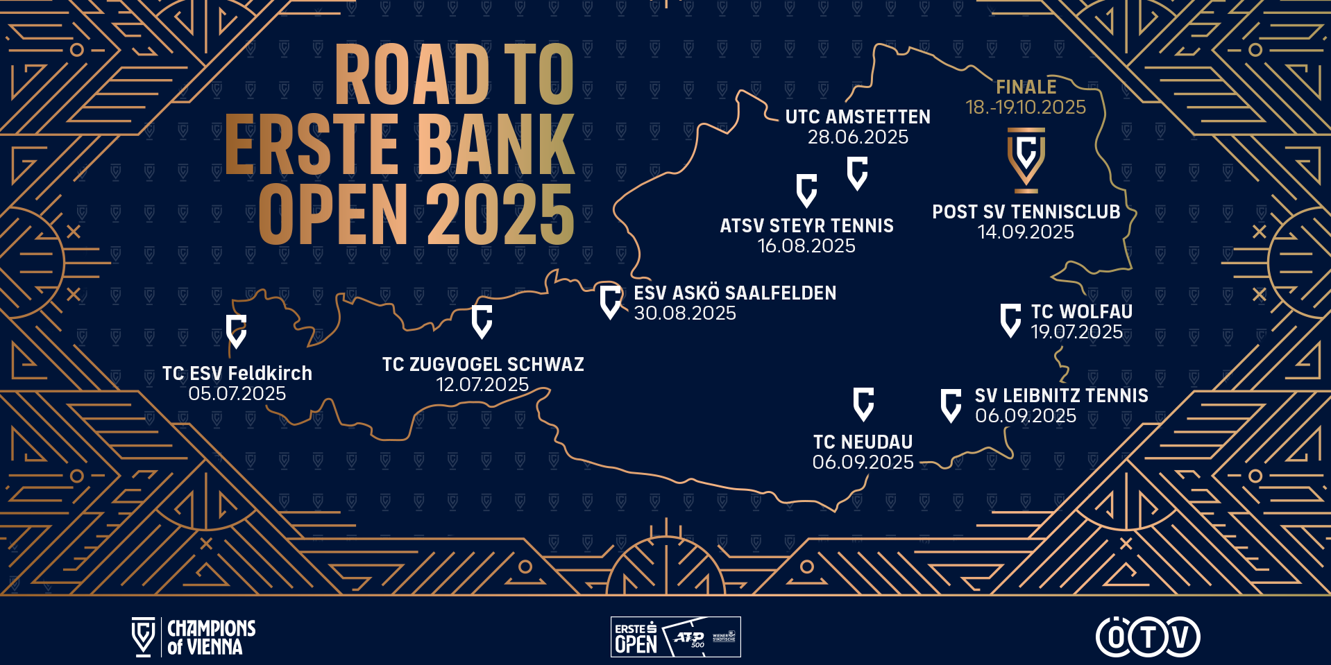 Träumst du davon, einmal wie ein Profi aufzuschlagen? Die Road to Erste Bank Open macht’s möglich! Melde dich jetzt für die Touchtennis-Qualifikationsturniere in deinem Bundesland an und kämpfe um deinen Platz im großen Finale am 18. und 19. Oktober 2025 am Wiener Rathausplatz.