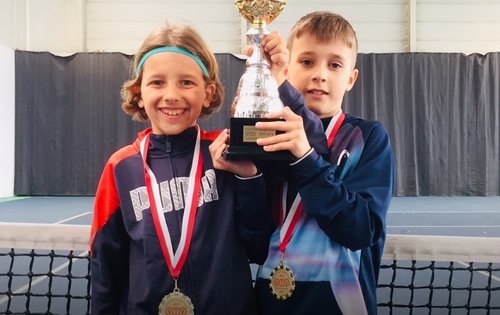 Nach einer krankheitsbedingten Absage gingen am Samstag somit vier Teams ins Rennen um den Wanderpokal, der schlussendlich an die Spielgemeinschaft TC Hard/TC Lauterach ging. Arthur Gosch und Timo Obexer verwiesen bei der achten Ausgabe des VTV Kids Junior Davis/FED Cups die Mannschaften des TC Bregenz 3, TC ESV Feldkirch 1 und TC Hohenems 1 auf die weiteren Plätze. "Die Jungs haben sich direkt nach der Preisverteilung schon ausgemacht, in welchen Abständen der Pokal bei wem zu Hause steht", freute sich Turnierorganisatorin Birgit Schobel-Tunner gemeinsam mit den Kids.