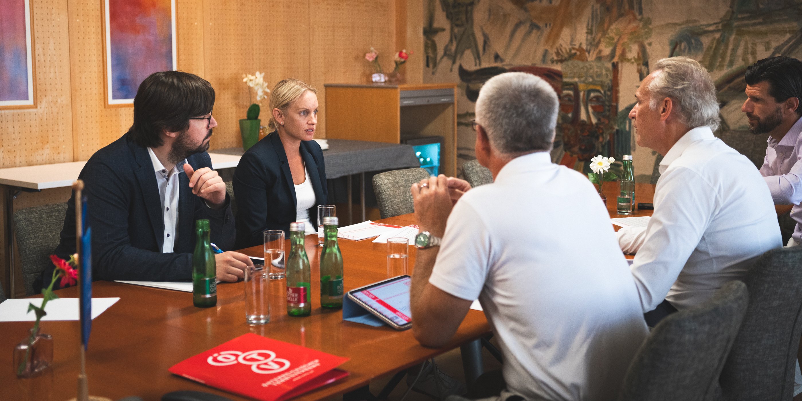 Am 28. Juli fand ein konstruktives und freundliches Arbeitstreffen zwischen Staatssekretärin MMag. Schmidt, BMKÖS-Sportreferent Mag. Mirza Buljubasic sowie ÖTV-Präsident Mag. Martin Ohneberg, ÖTV- Sportdirektor Jürgen Melzer und ÖTV- Geschäftsführer Wirtschaft, Thomas Schweda statt. Dabei wurden die Aufgaben und Ziele des ÖTV erklärt, die BMKÖS Förderungen und die kommenden Einsparungen angesprochen. Neben der Vorstellung des nationalen Turnierangebots und der Ausbildungsinitiativen war es dem ÖTV sehr wichtig die Staatsekretärin und ihr Team über die große Infrastrukturproblematik im Tennissport, die geringe Hallenkapazitäten für den Breiten – und Spitzensport, aber auch über die Situation des ÖTVs in der Südstadt aufzuklären.