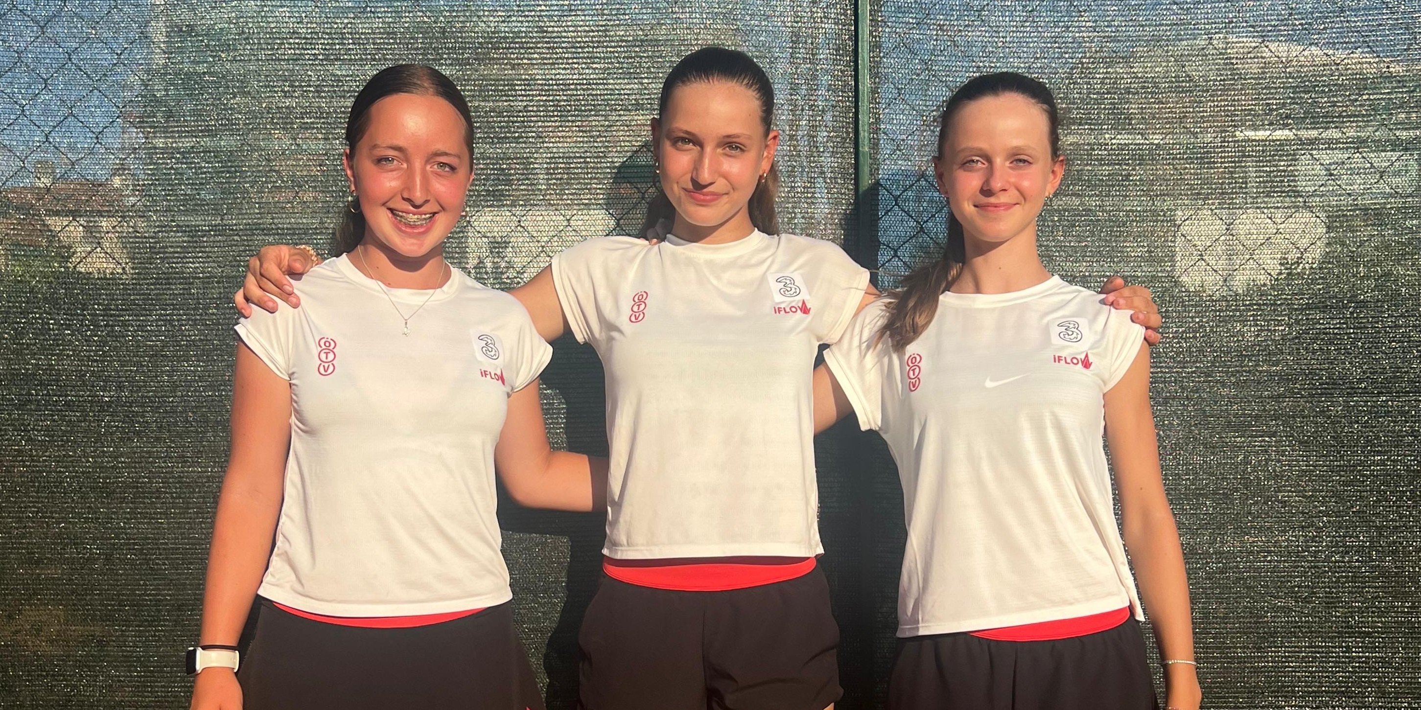 Die starken heimischen Mädchen U14 bei der Finalrunde der Tennis Europe Summer Cups in Loano. Von links nach rechts: Marie Schmidhofer, Julia Ehrenberger, Mia Neumüller.