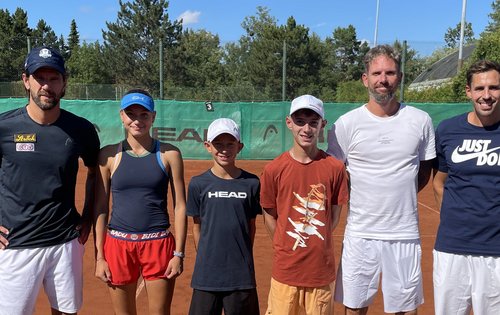 Bei der ersten Trainingswoche für die neuen Gesichter im ÖTV-Leistungszentrum Südstadt, von links nach rechts: Jürgen Melzer (ÖTV-Sportdirektor und -Davis-Cup-Kapitän), Julia Ehrenberger, Jakob Mittermayr, Milan Gal, Philip Lang (ÖTV-/ÖLSZ-Trainer), Lukas Jastraunig (ÖTV-/ÖLSZ-Headcoach).